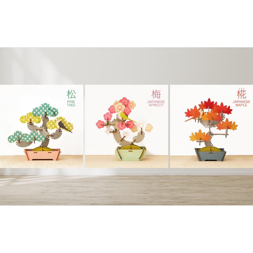 3 Variations: Pine Tree, Japanese Apricot, Japanese Maple