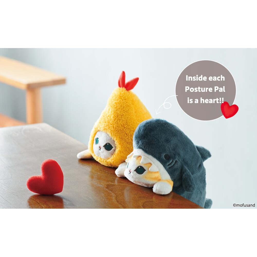 From Mofusand, Drawn By The Popular Illustrator Juno, “Shark Meow” And “Shrimp Meow” Are Now Available As “Posture Pals,” Stuffed Animals That Support And Improve Your Posture.